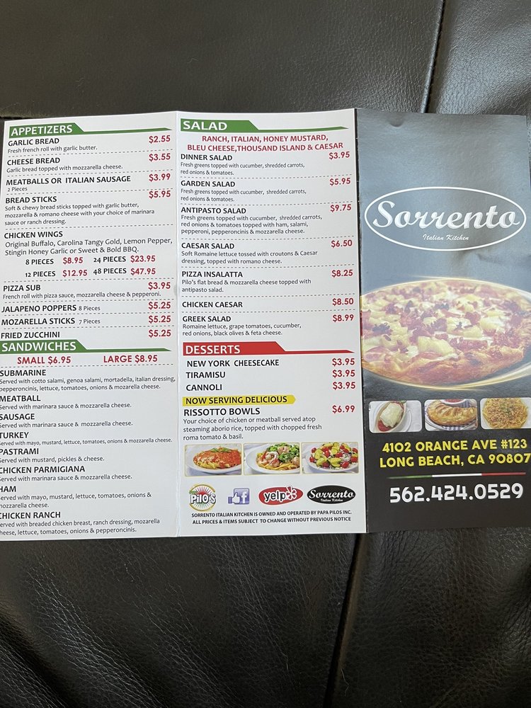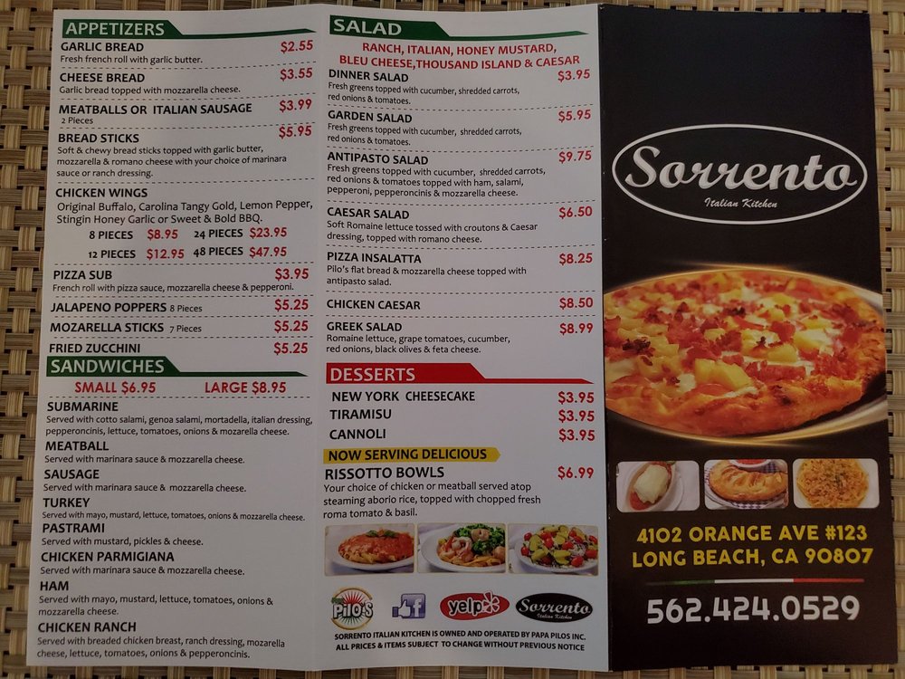 Welcome to Sorrento Italian Kitchen, an inviting haven for pizza and Italian cuisine lovers nestled in Long Beach, CA. This Latinx- and women-owned treasure offers a delightful menu that emphasizes fresh ingredients and hearty flavors. Whether you're a fan of classic pizzas or indulgent pastas, Sorrento has something for everyone.